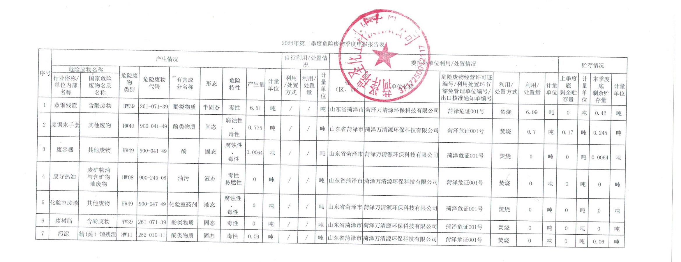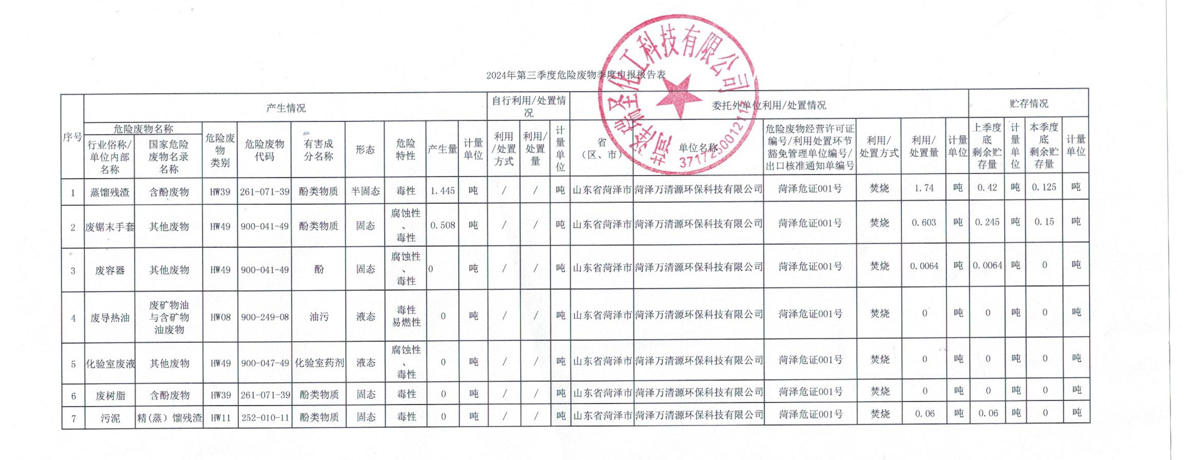 危險廢物申報報告表
